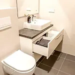 Az ingatlanban walk-in zuhanykabin és külön WC gondoskodik a kényelem fokozásáról. Továbbá hajszárító és törölközők szintén biztosított.